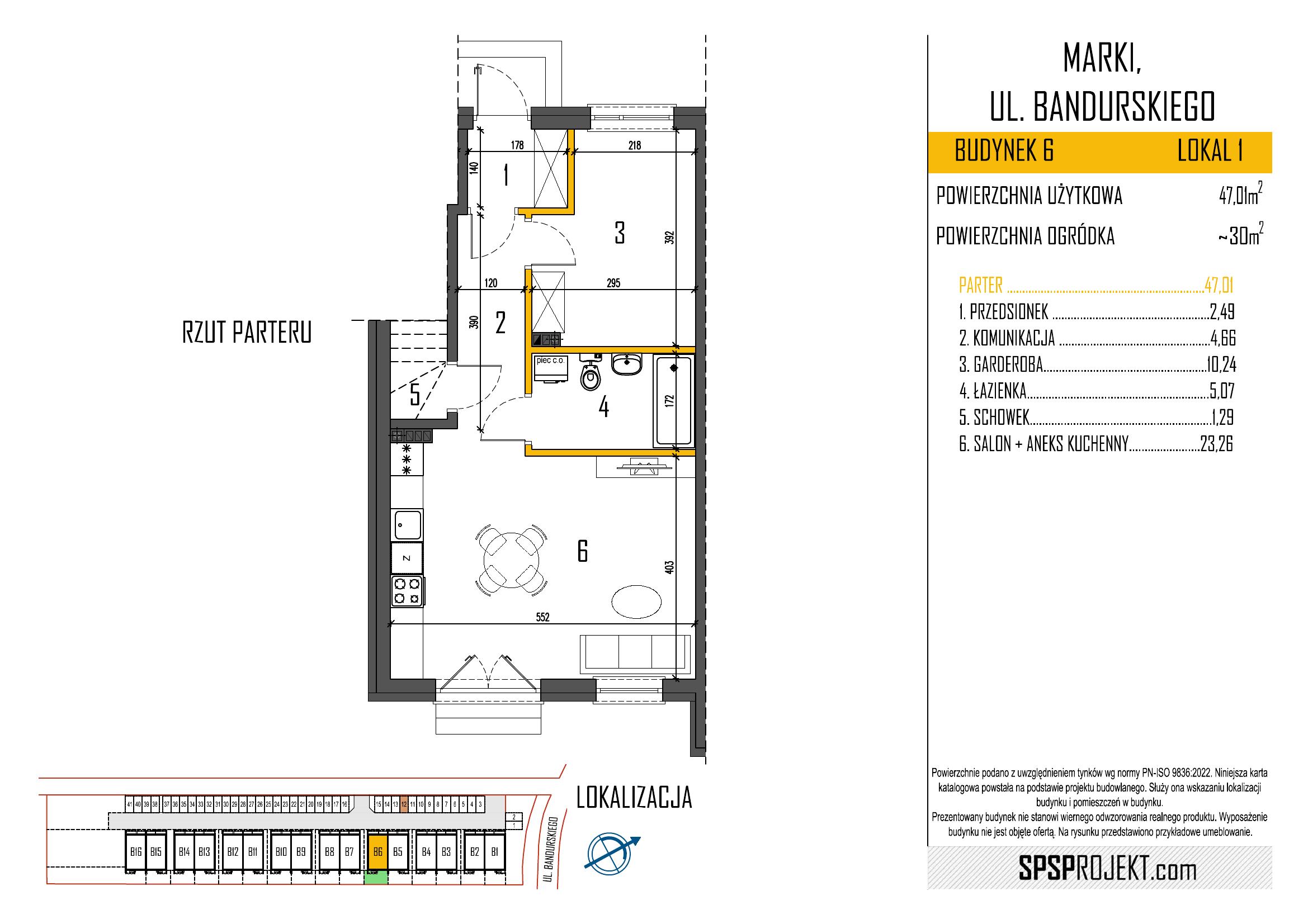 Marki, ul. Bandurskiego 49P, Budynek 6 Parter 1 47.01 30 2+aneks 10,848.76 510,000.00 1MP naziemne 0 zł więcej informacji