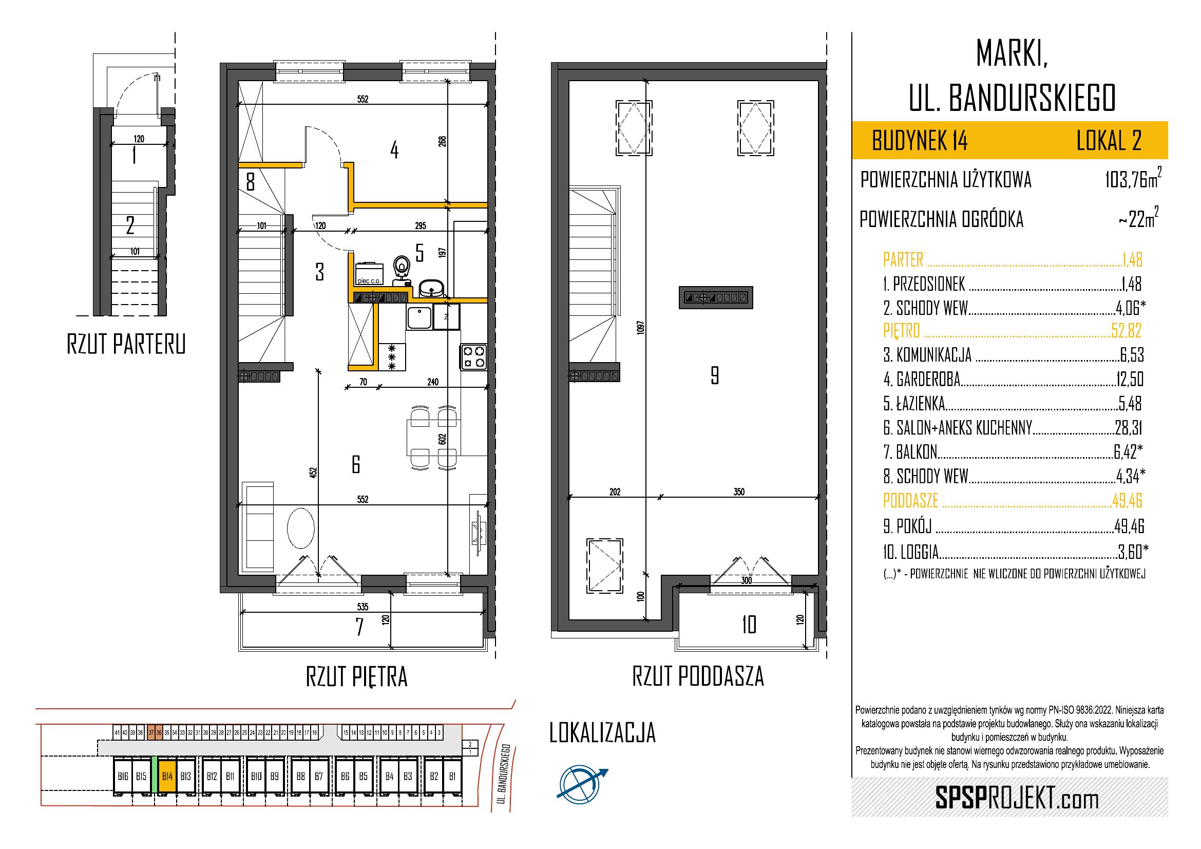 Marki, ul. Bandurskiego 49P, Budynek 9 Piętro 1+Poddasze 2 103.76 11 6,42+3,60 4+aneks 2MP naziemne 0 zł więcej informacji